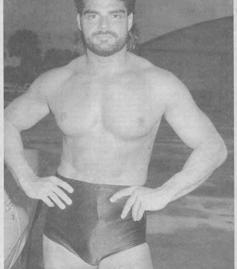 Next, The Wrestler introduces us to Lou Perez, whom we’re told is the brother of Al Perez. (They’re actually cousins.) Lou, a body builder who was named 1983’s Mr. Tampa, is wrestling in Florida as a fan favorite where he’s managed by Ron & Ron, a pair of popular radio personalities.