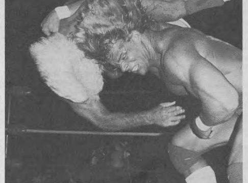 Craig Peters says, “I never thought I’d see the great Mike Rotundo become so unbalanced. It appears we may never again see the scientific star who thrilled fans all over the world. You’re not only a rulebreaker, you’re downright vicious!” Rotundo says, “Aw, sticks and stones, Peters. Who cares what you think anyway? All I care about is getting my title back. Then the Varsity Club will completely dominate the NWA!” (Rotundo, by the way, would like to remind everyone that tomorrow is April 15, the best day of the year.)