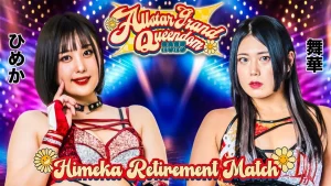 The Players: MaiHime explodes! Well, in an emotional way. These two women are friends and partners, and Himeka is about to call it a day, but wanted her last Stardom match to be against her tag team partner. The two came up a bit short against champs 7Upp in their last shot, and Himeka will be almost done after this one.