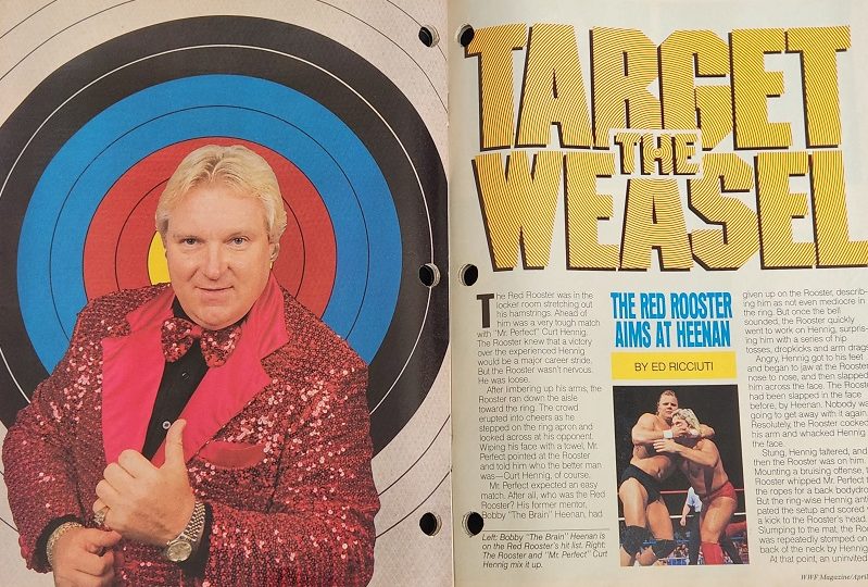 Next, an article about the Red Rooster targeting Bobby Heenan, recapping the feud. Heenan managed the Rooster before a blow up on Saturday Night’s Main Event where they got into a fight. Then on Prime Time Wrestling as Heenan was offering an apology, the Brooklyn Brawler, Steve Lombardi, blindsided the Rooster, leaving him down and out. Now, the Rooster wants Heenan in a match, and the two will meet at WrestleMania V.