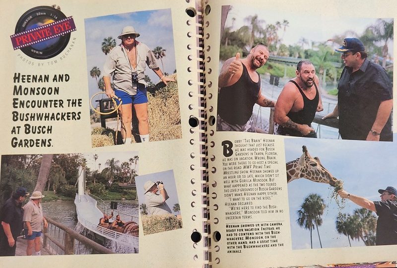 Next, Private Eye shares photos of Bobby Heenan & Gorilla Monsoon with the Bushwackers at Busch Gardens, which was part of a taping for Prime Time Wrestling. (I was down there around this time, and this was just as Busch Gardens was pivoting toward having more rides to attract more visitors. They were also trying to compete with Cypress Gardens, which later became Legoland.)