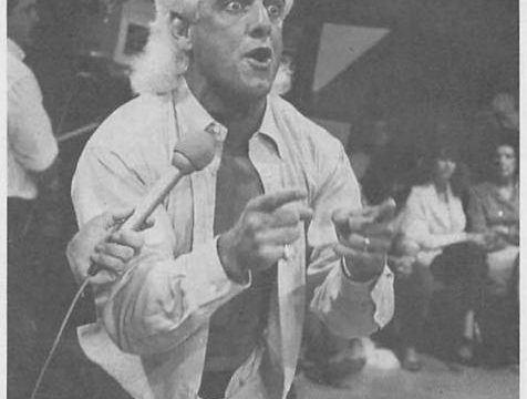Next, The Insider with Eddie Ellner, where Eddie reports that he hung out with Ric Flair for a week leading up to Flair’s match against Rickety Steamboat at the Chi-Town Rumble. Flair, we’re told, runs his household with an all-female staff and treats them like an Egyptian slave-driver. The week began with him angry about not being able to find the right shoes to go with his suit, despite a closet full of 200 pairs in every conceivable style and make, some costing thousands of dollars. Flair made a phone call to place an order and took Eddie to the airport where a private pilot awaited to fly them to Los Angeles. Once on board, Flair surprised Eddie by stripping down to his boxers and beginning a series of stretches and calisthenics before, at 40,000 feet, lifting weights. Eventually, they arrived in L.A. where Flair spent $24,000 to satisfy his feet.