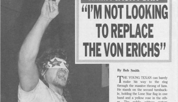 Next, an article about Jimmy Jack Funk who’s now a fan favorite in World Class. He says he’s not trying to replace the Von Erichs, he’s just trying to live up to the Funk name and defend the great state of Texas.