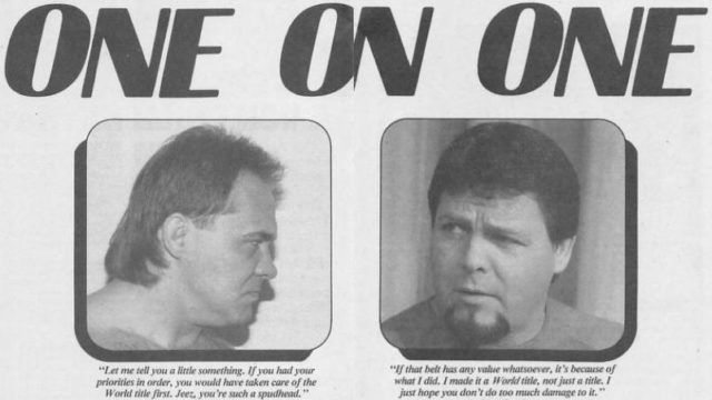 Next, On the Road with Craig Peters, where Craig says he recently talked to Bruno Sammartino about new AWA champion Larry Zbyszko, and Bruno said, “I feel like I’ve created something that’s gone out of control.” Longtime wrestling fans may recall that Bruno trained Zbyszko before Zbyszko turned on his mentor and became a hated rulebreaker. Bruno says he now has little respect for Zbyszko and the man is devaluing the AWA championship. “I mean, let’s face it, there have been sensational athletes who have held the AWA title,” Bruno says. “Verne Gagne, Fritz Von Erich, Nick Bockwinkel, Jumbo Tsuruta, and Rick Martel… but Zbyszko? Doggone it, the man is just not world-champion material.” Zbyszko, for his part, says Sammartino was a crybaby before, and he’s a crybaby now. “He should be the one to talk about devaluing a championship. I’ve heard Buddy Rogers was in the hospital recovering from a heart attack a week before Bruno beat him for the WWF championship. At least I was in the ring with 18 of the sport’s toughest competitors. He’s a jealous, bitter old man no longer competing, and by today’s standards, he wasn’t really good at all.” Bruno’s response: “Lets see him hold his belt for 11 years, then he can come back and discuss what being a worthy world champion is all about. Until then, he’s nothing but a load of hot air.”