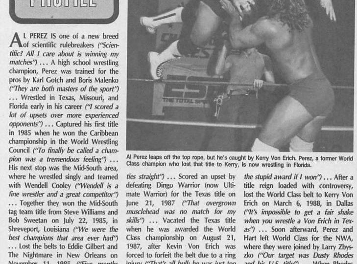 Next, Capsule Profile looks at the Latin Heartthrob, Al Perez, who has left the NWA for Florida. (Al was a good wrestler, but he got lost in the shuffle in the NWA.)