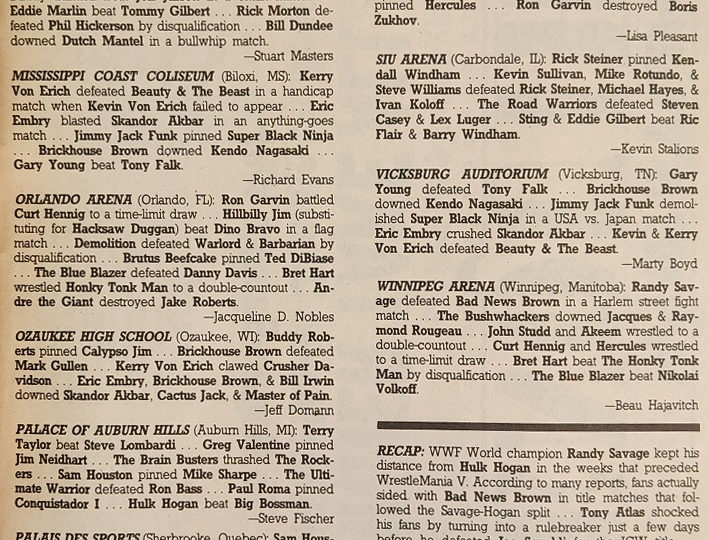 – The WWF actually has already broken the all-time gate record at press time for WrestleMania V, with $1.6 million.
