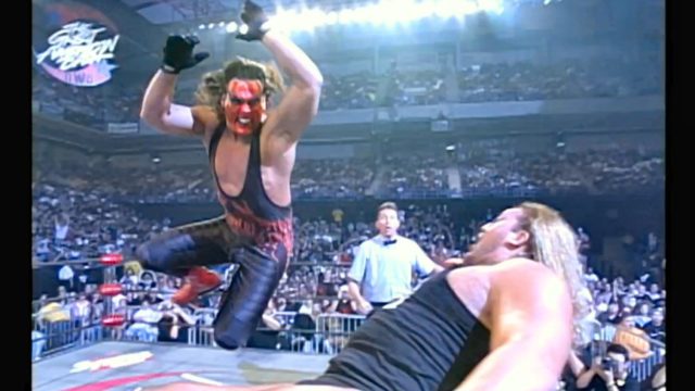 K-Dawg’s night goes from bad to worse, as Hennig and Rude jump him before revealing that they’re actually part of nWo Hollywood and not The Wolfpac. They didn’t really suit The Wolfpac anyway to be honest. Kevin Nash and Lex Luger make the save before their buddy gets beaten too badly, and this feud will continue.