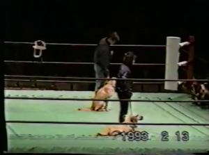 From what I can gather they’re Guide Dogs and PWC is giving them a charitable donation. Given the state of the industry, the mutts should have been giving their loose change to the Crusaders. Some Guide Dogs though, I’d hope mine would give me a warning woof if I was heading to a show like this when FMW, NJPW, AJW etc were all available.