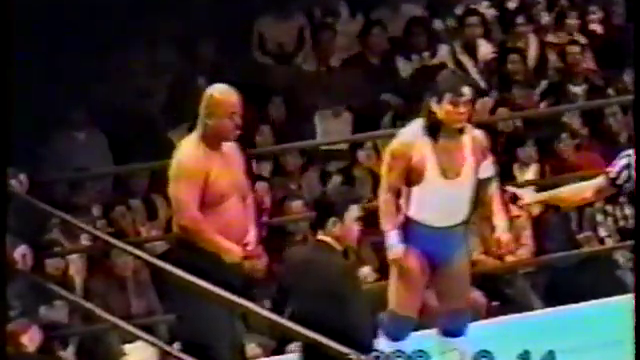 The reaction for Onita’s entrance is the loudest thing on the show, he really was so popular that people were showing up JUST for him, which probably explains the silence during the rest of the event. Well that and the matches were mostly crap. Goro gets headbutted into his wrapped-up head and both men head outside and out of the camera view. Goro comes back with his own headbutts and Onita is vibing well with the immobile boob. Kendo tags in so Goro tags in Ueda and then it all goes to hell as Onita is attacked with a kendo stick by Manny who randomly showed up at ringside. Kendo and Goro go at it instead until Onita returns to DDT Goro until Goro dumps him outside so Manny can twat him some more. Kendo wails away on Goro instead which takes away from any tension if Kendo is able to continue just fine 2-on-1. Onita returns again to lock in a long single crab to Goro before more double teaming to poor Goro who is apparently doing everything in this match. Onita clotheslines Goro and Kendo piledrives him to…win at 11:51? What the hell was that? Ueda didn’t tag in or do anything the whole match!